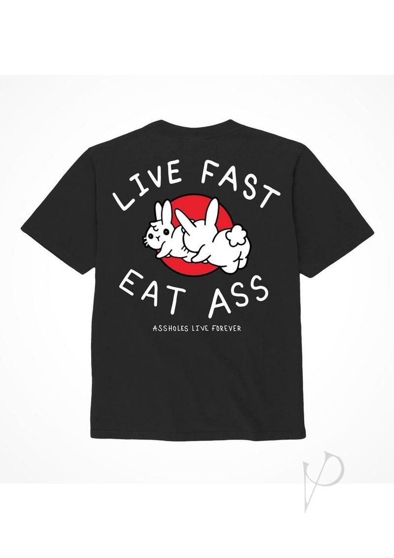 Alf Live Fast Eat Ass Tshirt Lg Blk
